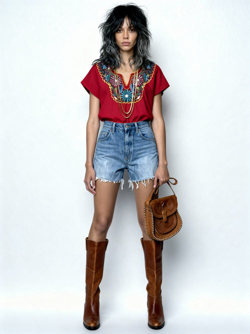 High-rise: Common in older denim, this shape creates a defined waist and retro look — great for tucking tops.